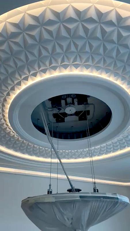 Разработали, изготовили и установили зксклюзивный подъемник для люстры диаметром 5 метров.