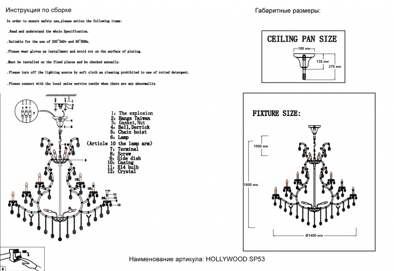 | Материал подвесок | Хрусталь |